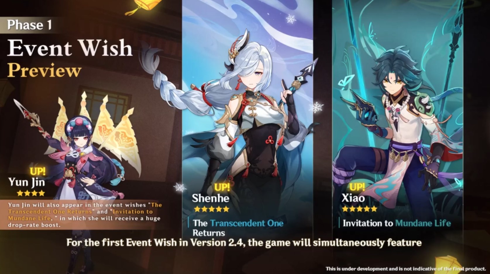 Genshin Impact Banner In 2.4. Shenhe, yun jin, xiao, zhongli and more. Genshin impact 2.4 update will be released on wednesday 5th january 2022 and details emerged regarding what can be expected.