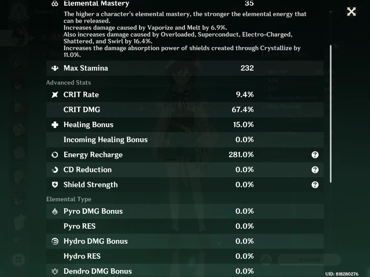 Genshin Impact Elemental Mastery On Venti. Performs up to 6 consecutive shots with a bow. Make sure to raise your elemental mastery for your main dps characters that rely on elemental reactions like vaporize or melt to maximize their damage output!